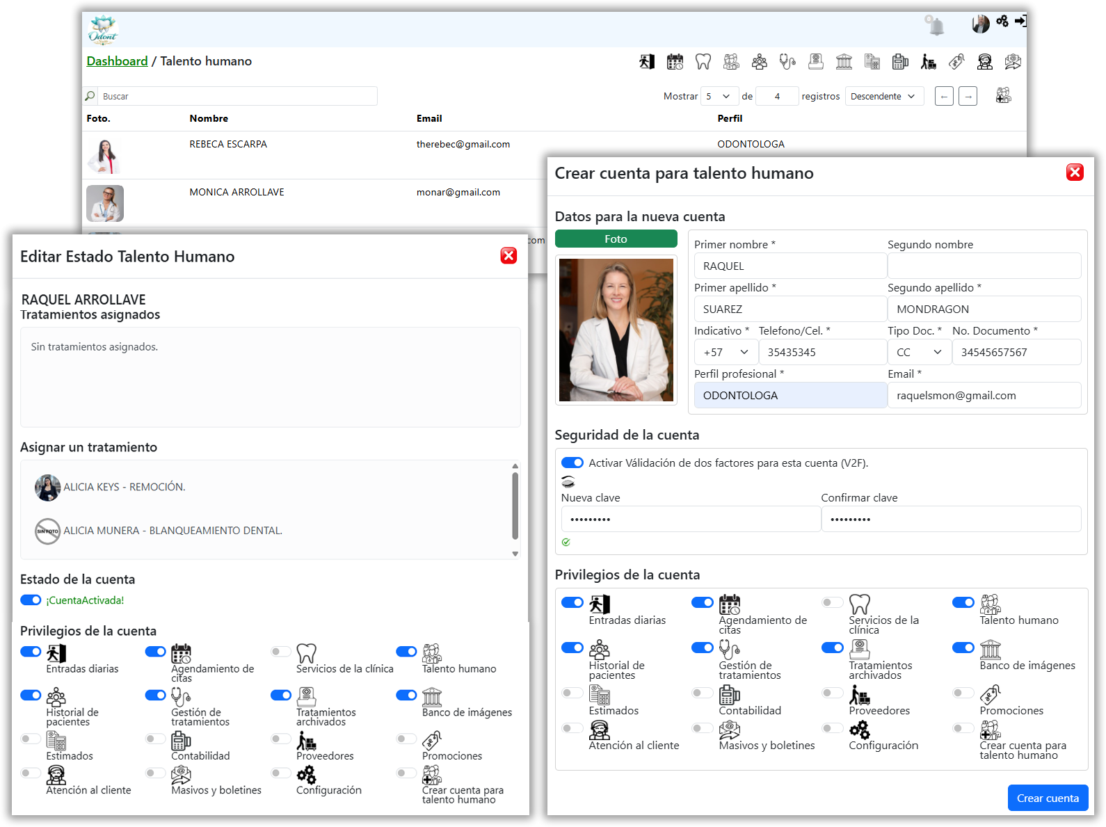 El módulo de Gestión de Talento Humano de OdontoSuite permite administrar de manera eficiente la información y las cuentas del personal que forma parte de la clínica odontológica.